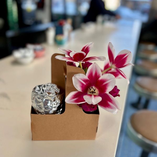 Looking to really impress your Valentine this year? Get them a gift that goes beyond the expected! Choose a coffee, agua fresca, or burrito to go with a flower arrangement, we're calling it the Blossom Bundle. Flowers and colors will vary based on availibility but we promise to deliver an impressive arrangement. Blossom Bundle priced at $20 plus the cost of your food or beverage selection and applicable tax.
